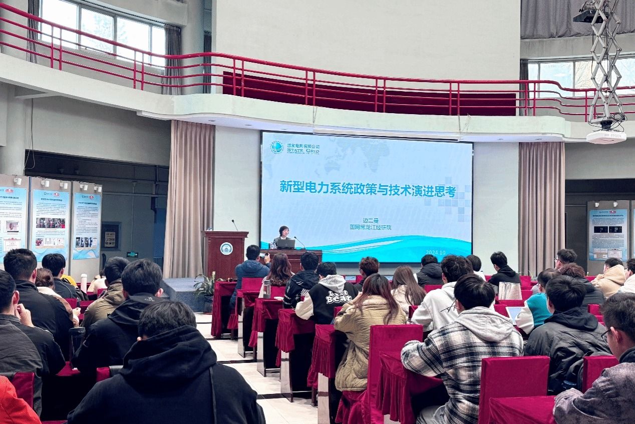 10月22日,国网黑龙江省电力有限公司经济技术研究院边二曼院长以“新型电力系统政策与技术演进思考”为题,以习近平总书记提出的“四个革命、一个合作”能源安全新战略为切入点,详细介绍了新型电力系统的国家战略发展、建设目标、关键技术等三个方面内容。课上,边二曼院长结合“煤炭煤电”、四川“四最”等相关实例,重点讲述了新型电力系统建设面临的形势与挑战和新能源体系建设方面关键技术,使同学们对新型电力系统建设的发展形势及未来研究方向有了更深刻的见解。