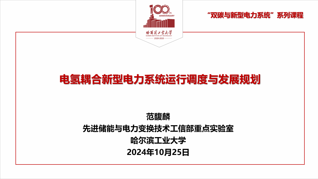 10月26日,哈尔滨工业大学电气工程及自动化学院范馥麟教授讲授了“电氢耦合新型电力系统运行调度与发展规划”主题课程。课上,范教授以深厚的专业知识和丰富的实践经验,深入浅出地为同学们剖析了电氢耦合新型电力系统的核心要点,从电能与氢能的双向转换协调、可再生能源的波动性、电力系统可靠性保障等多个方面详细阐述了电氢耦合新型电力系统运行调度的复杂机制。同时,围绕技术创新的前沿方向、基础设施建设的战略规划,如高效电解水制氢技术的突破、高性能燃料电池的研发、智能电网的升级改造等对电氢耦合新型电力系统发展规划的长远布局进行了全面解读。