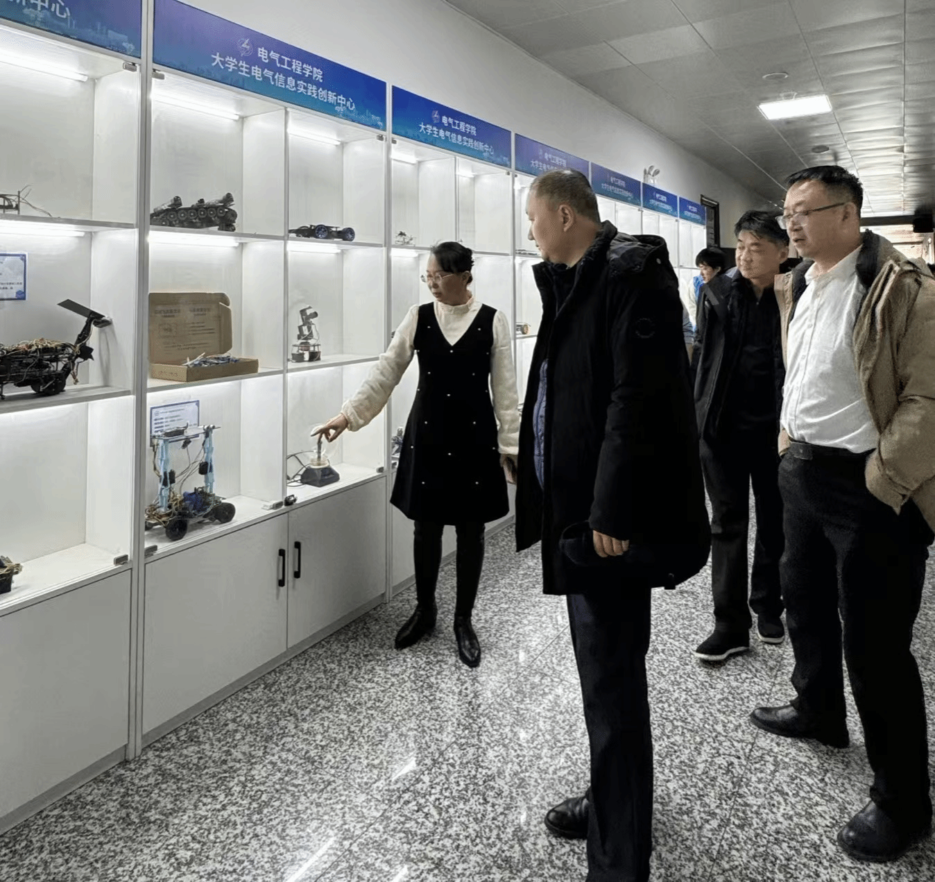 李卫国副院长和杨修宇副院长的陪同下,参观了创新中心各实训室。创新中心娄娟老师介绍了创新中心的运行模式、硬件条件以及大学生课外科技竞赛的开展情况。中心注重跨学科交叉融合,整合了电气工程及其自动化、电子信息工程等多个学科的资源,为学生提供了广阔的创新实践平台。