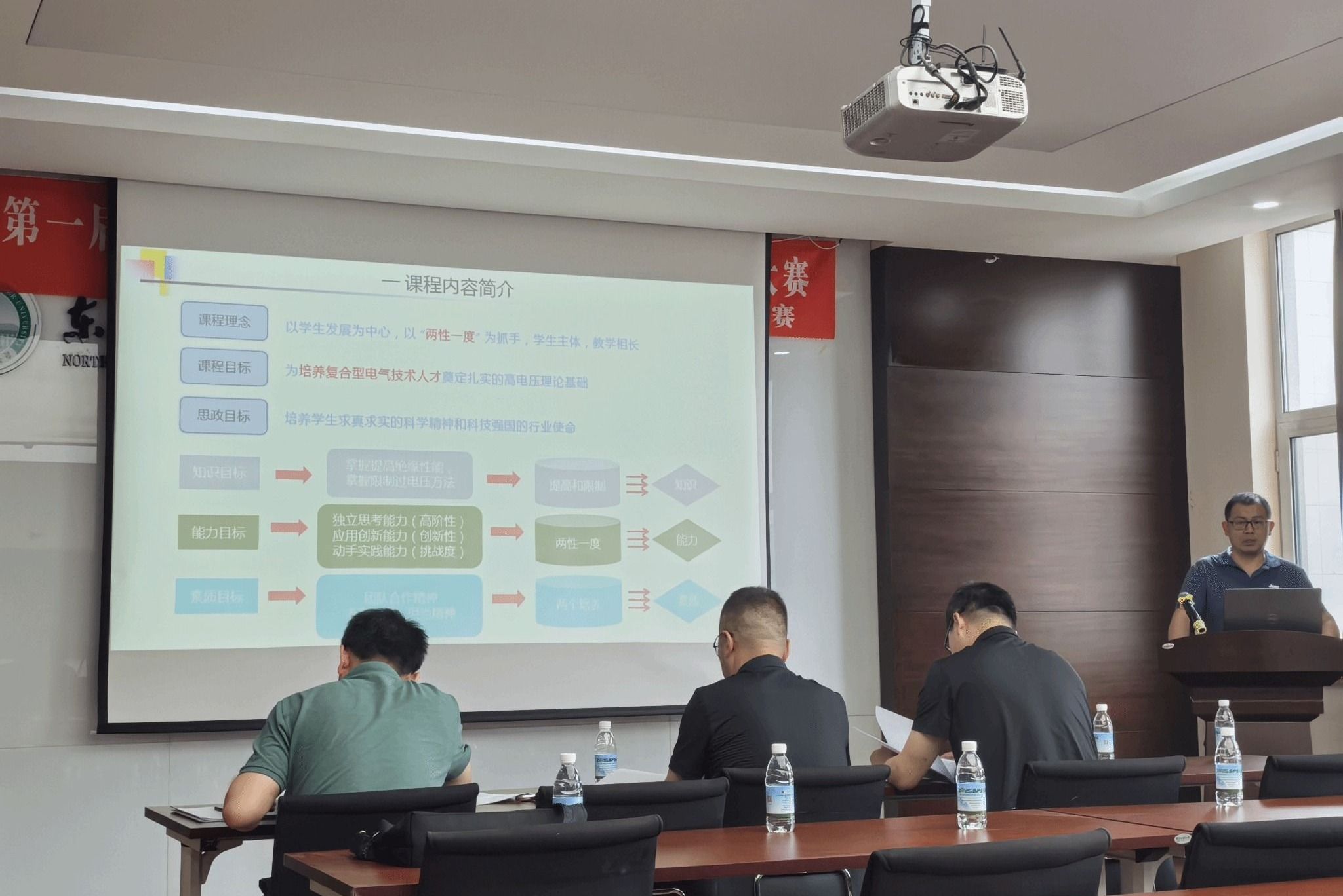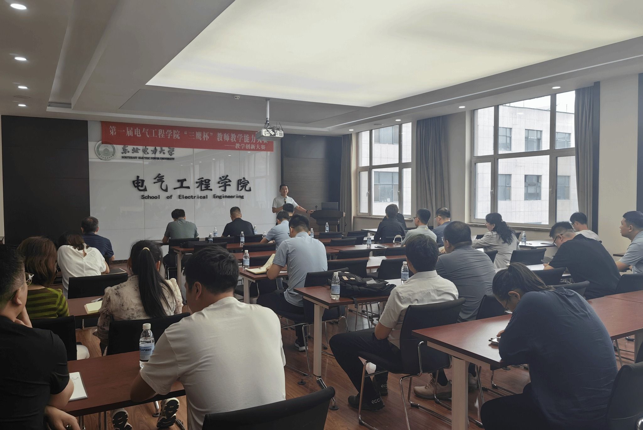 杨修宇副院长主持中指出,“随着电气工程及其自动化专业生源质量持续提升,对教学质量提出更高要求。本次大赛不仅是展示教学成果的平台,更是推动教学改革,提升育人能力的契机”。