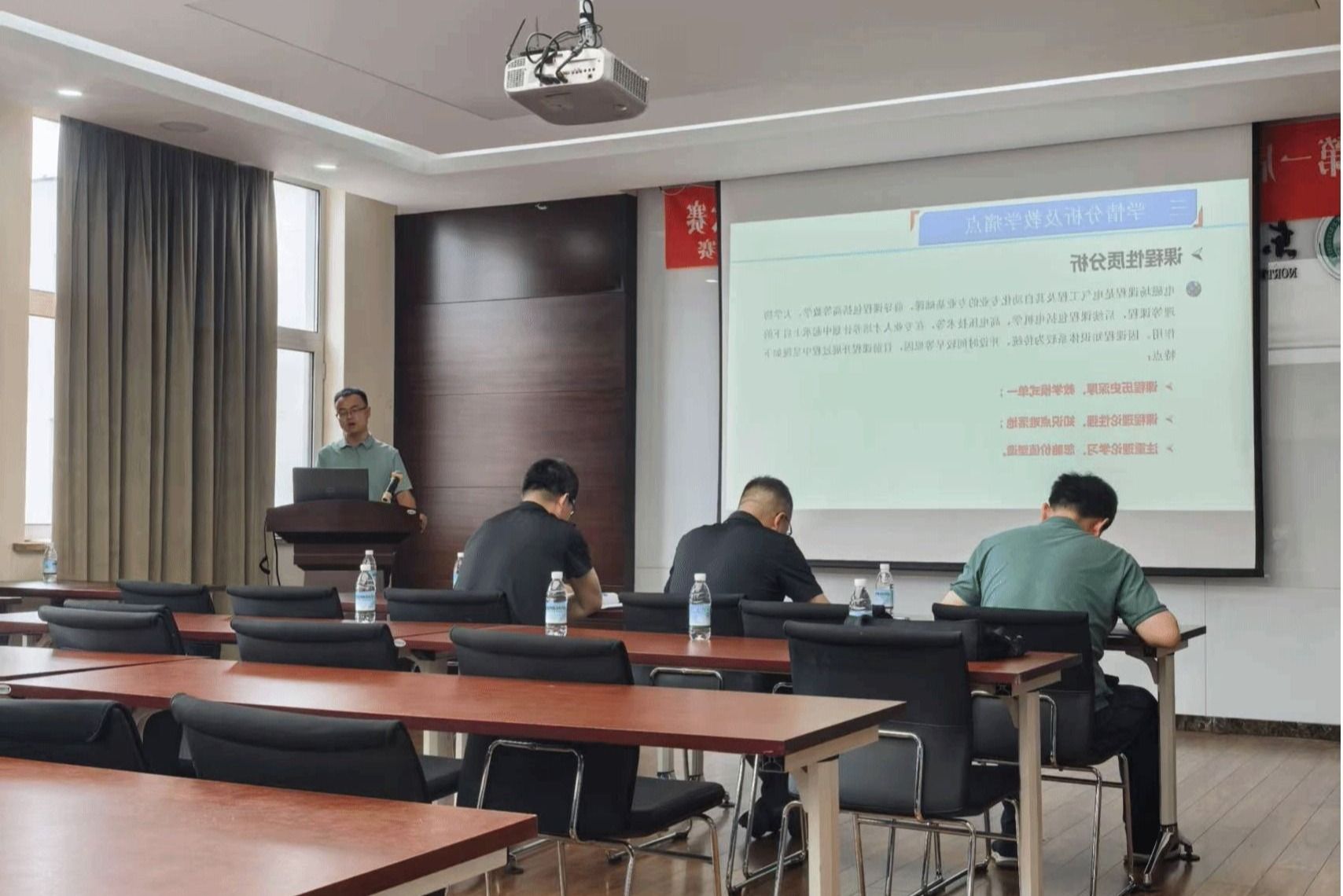 副院长杨修宇主持。教师发展中心主任王建元、学院党委书记杨茂、副院长孙正龙及多位专家评委出席活动,来自各课程组的参赛教师与观摩教师共同参与。
