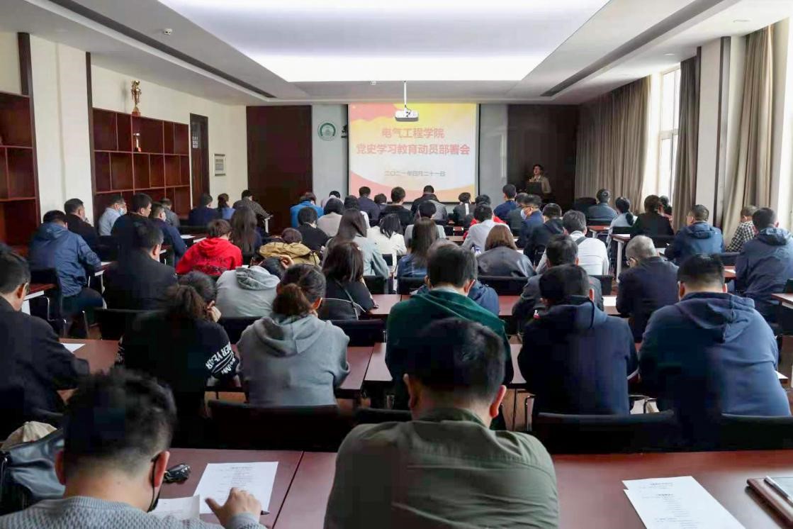 党委在电动大楼A412会议室召开党史学习教育动员部署会,学院领导班子成员和全体教工党员参加会议,学院党委书记宋小囡作动员讲话,会议由学院党委副书记高鹏主持。