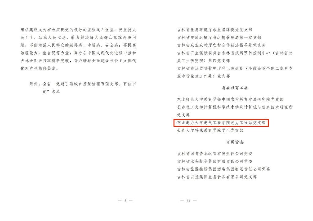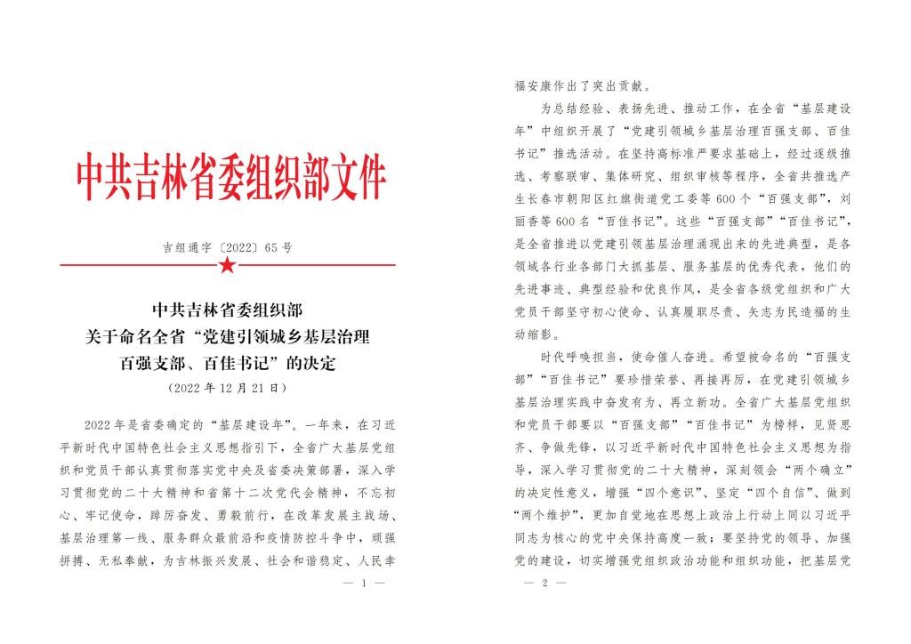 近日,中共吉林省委组织部正式印发了《关于命名全省“党建引领城乡基层治理百强支部、百佳书记”的决定》,我校六合彩