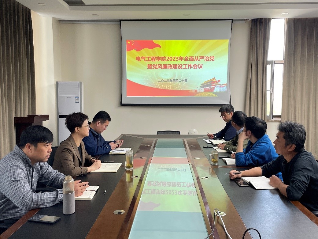 在电动大楼A402会议室召开2023年全面从严治党暨党风廉政建设工作会议,学院领导班子成员参加会议,学院党委书记宋小囡主持会议。