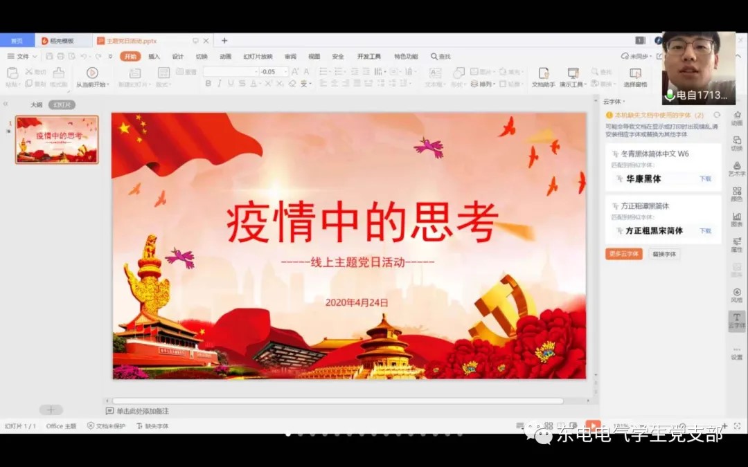 12个学生党支部开展“疫情中的思考”线上主题党日活动。