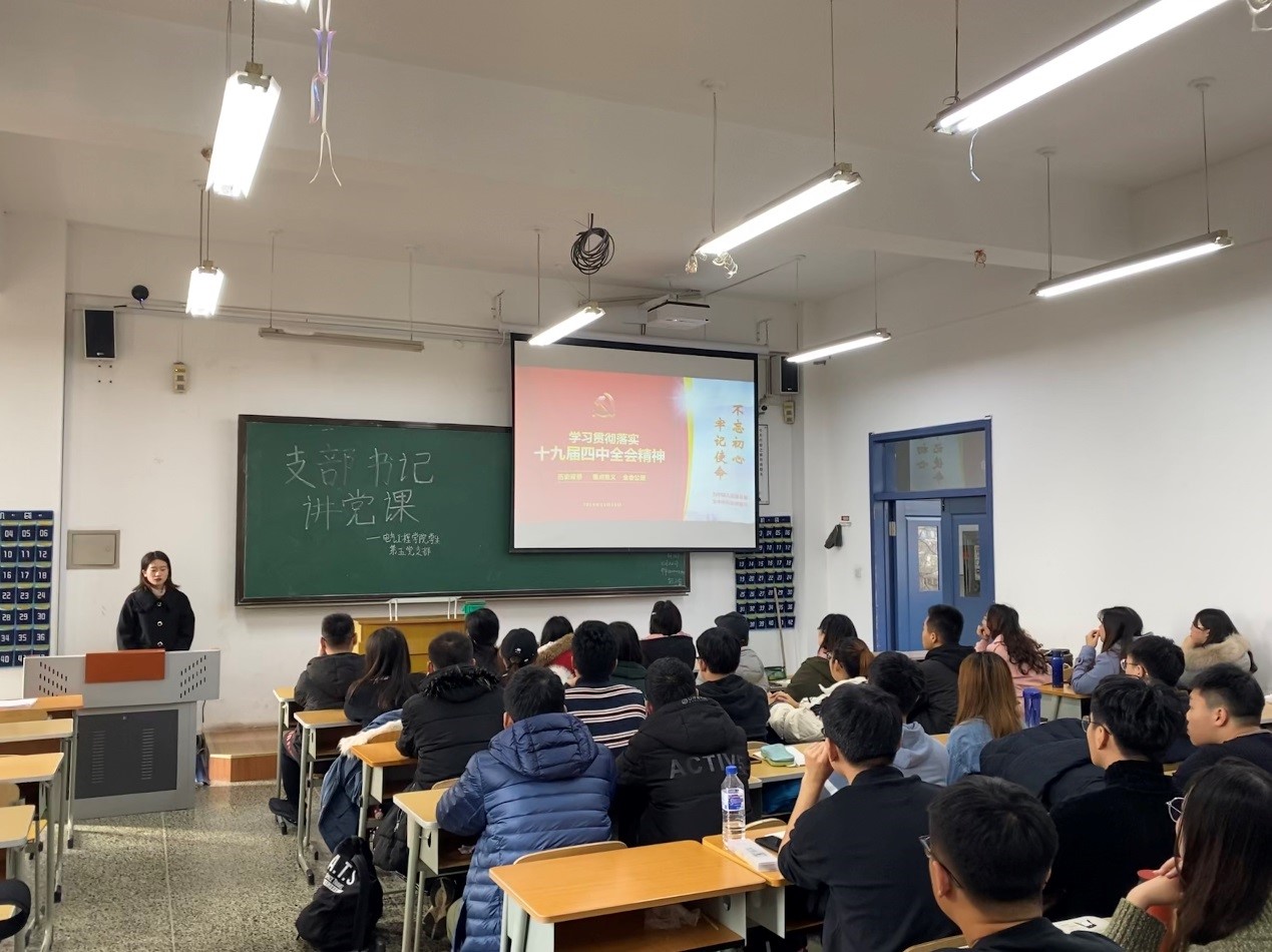 学生第五党支部在第二教学楼311教室开展集中学习十九届四中全会精神暨党支部书记讲党课活动。党支部书记郝圆圆、全体党员、发展对象、入党积极分子、团支书参加学习。