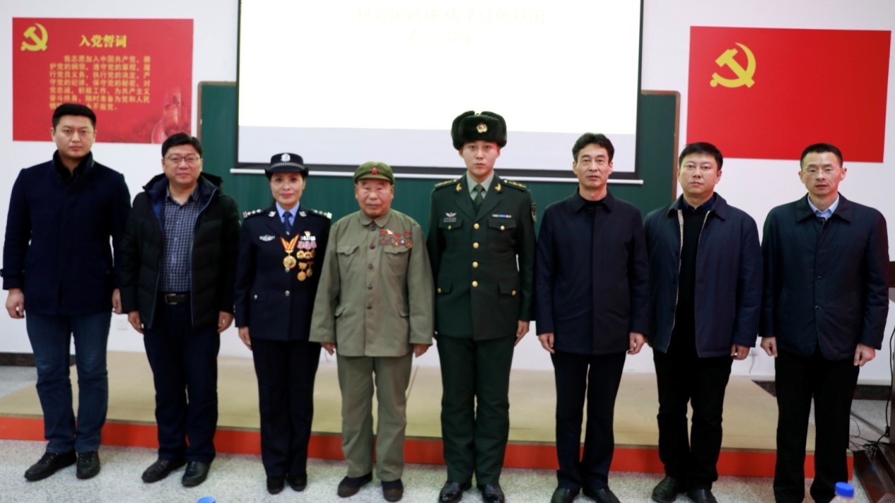 年近九十高龄的代宝善老人,参加过抗日战争、抗美援朝等很多战役,在讲起那段艰苦岁月时,老人仿佛又回到了过去和敌人战斗的场面,生动感人的事迹,体现出老一辈革命家坚定的理想信仰,展现了中国共产党人坚强的革命意志、顽强的革命精神。大家在代老的带领下,唱起了《没有共产党就没有新中国》。代老呼吁同学们要不忘历史,努力学习,为祖国未来的发展做出更大贡献。