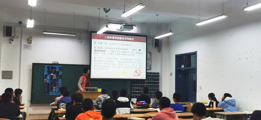 一支部党员王昊宇同志为新生作入党启蒙教育讲座