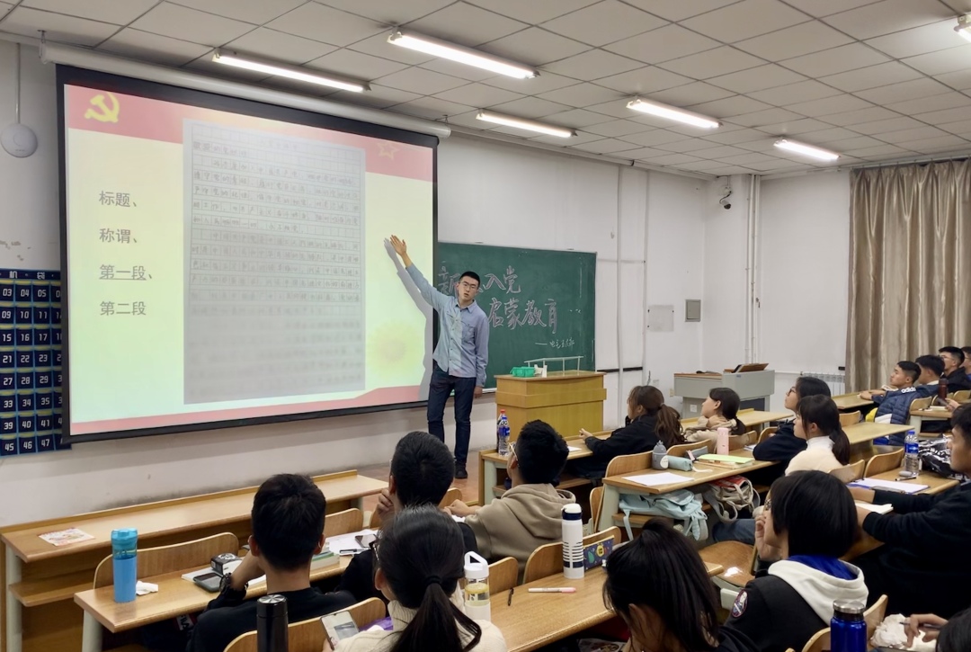 学生第三党支部书记夏先林对授课学生党员进行统一培训,统一设计新生入党启蒙教育PPT讲稿,并对PPT内容作详细说明,强调讲座的相关注意事项。