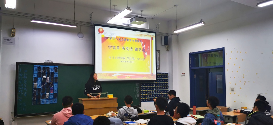 2019级新生入党启蒙教育讲座。主讲人分别由各个学生党支部推荐的优秀学生党员担任,他们分别是学生第一党支部刘溢、田鑫权、王昊宇、薛冰玉;学生第二党支部王康、章婉钰、赵晓涵;学生第三党支部谷奉锦;学生第四党支部石晓博;学生第五党支部姜锦涛、孙哲正;学生第六党支部张琳、高远航。