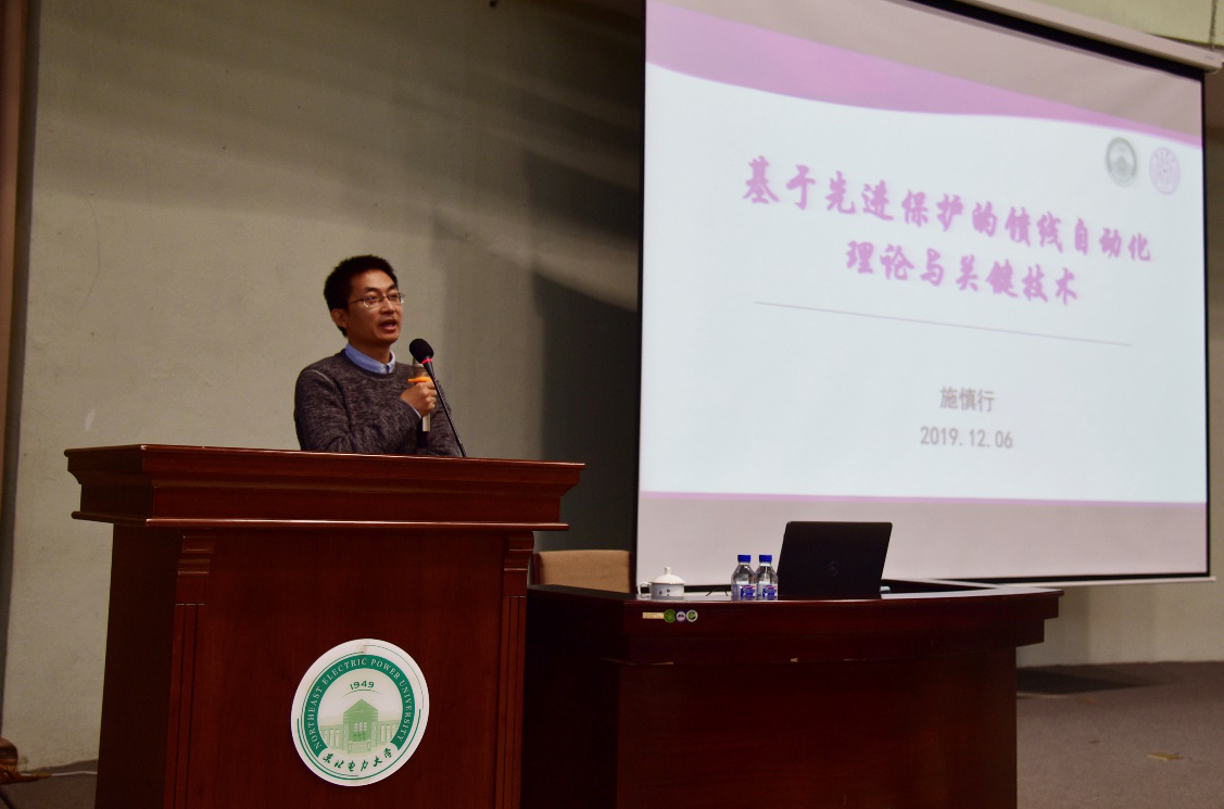 然后,施慎行副教授做了题为《基于先进保护的馈线自动化理论和关键技术》的学术报告,主要从先进保护的馈线自动化理论与关键技术的背景现状、理论基础、关键技术、系统构成与结论展望五个方面深入浅出地介绍了先进保护的馈线自动化理论与关键技术的相关内容,还在电力系统行波特点、电力系统运行和配电网的特点等方向深入介绍了其关键技术及核心内容。