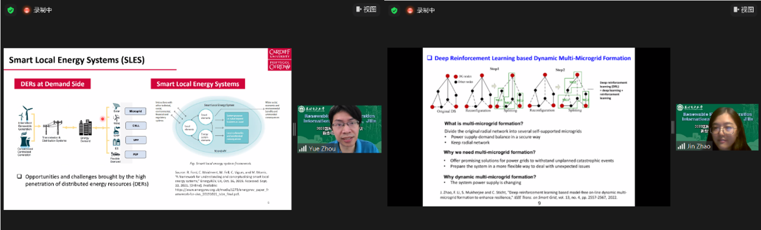 本次论坛由姜涛教授主持,姜涛教授介绍了学院举办本次论坛的目的和意义,并对4位嘉宾表示了热烈欢迎。随后来自新加坡南洋理工大学的徐岩教授作了题为《Coordinated Operation and Planning of Distributed Energy Resources (DERs) in Microgrids》的报告,介绍了其团队在分布式能源规划和运行的相关研究成果;来自俄罗斯斯科尔科沃科学技术研究院的Vladimir Terzija教授作了题为《Situational Awareness and Control of Future Power Systems》的报告,分享了他在英国和俄罗斯的科研团队在电力系统态势感知和控制方面的最新研究成果;来自英国卡迪夫大学的周越博士作了题为《Development of Smart Local Energy Systems in the UK》的报告,介绍了英国智慧能源系统的组成、发展及对中国智慧能源系统建设的启发;来自德国多特蒙德工业大学的赵瑾博士作了题为《Machine Learning Supported Resilient Power Grids》的报告,介绍了其如何将机器学习应用到电力系统韧性评估与提升中。