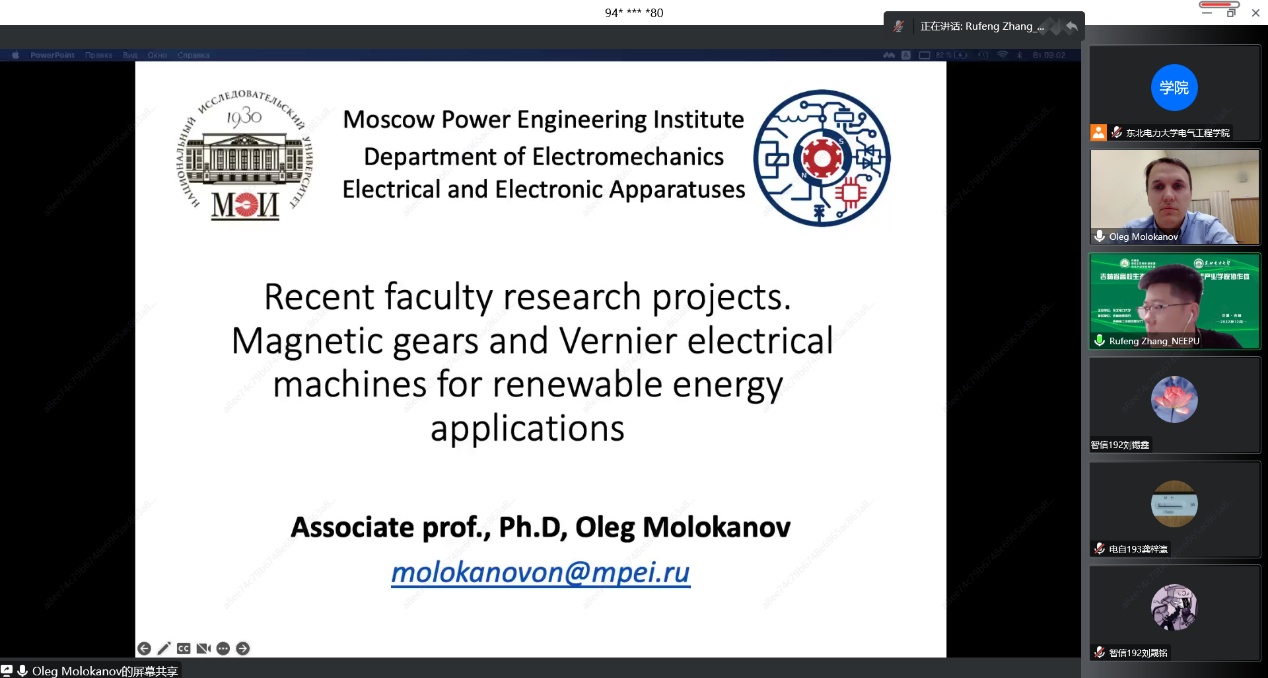 1月10日下午,应学院邀请莫斯科动力学院Oleg Molokanov教授通过腾讯会议方式作了题为《Magnetic gears and Vernier electrical machines for renewable energy applications》的线上学术报告,并在腾讯会议直播平台进行了直播。本次学术报告由张儒峰教授主持,学院部分教师、研究生及本科学生在线聆听了本次学术报告。